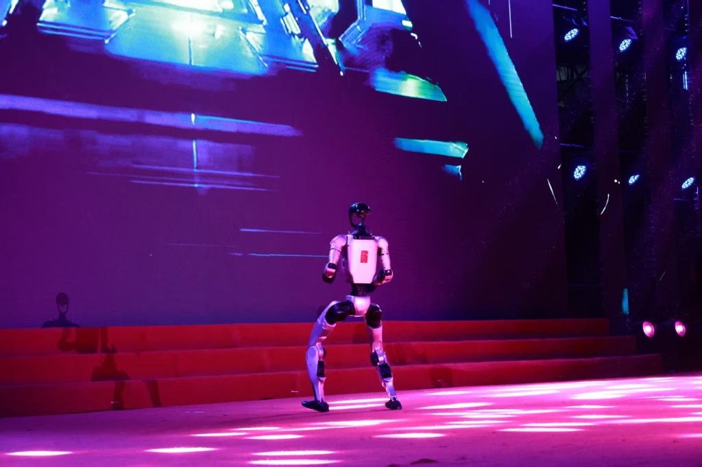 正当观众沉浸于舞蹈的动感韵律时,舞台灯光聚焦,两位特殊的“舞者”——人形机器人闪亮登场。它与学生们同台共舞,其精准、灵活且充满未来感的独舞表演,与人类舞者形成了奇妙的呼应,完美诠释了科技与人文的融合。这一环节不仅带来了强烈的视觉冲击,更直观地体现了物流工程学院在智能科技、自动化领域的前沿探索,引发了观众阵阵惊叹。